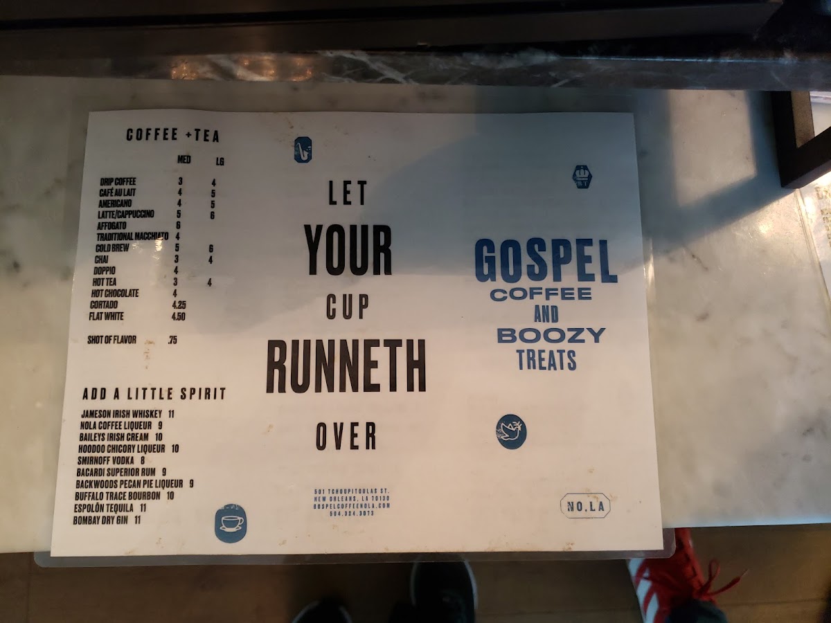 Gospel Coffee and Boozy Treats Menu